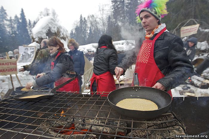 повсеместно идут перестрелки снежками :) Кстати, прямо на поляне стоят печи